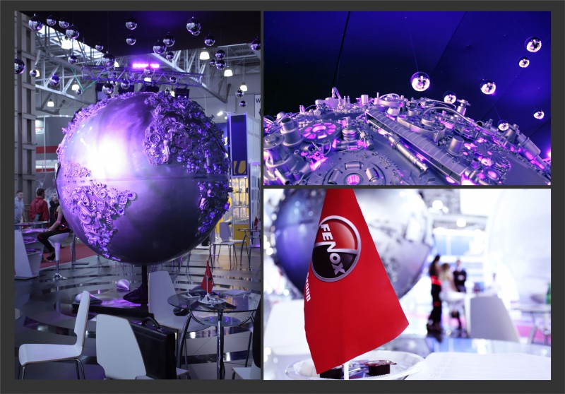 Изображение создавалось на водном экране-занавесе размерами 8 * 8 метров. Каждая капелька воды искрилась в лучах лазеров. Водный экран-занавес может применяться как на улице, так и в помещении. Максимальный размер экрана 12х12 метров.